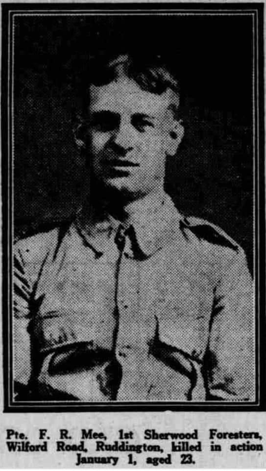 Private Frank Ramond Mee Hufton (served as 'Frank Mee'), 1st Bn., Sherwood Foresters